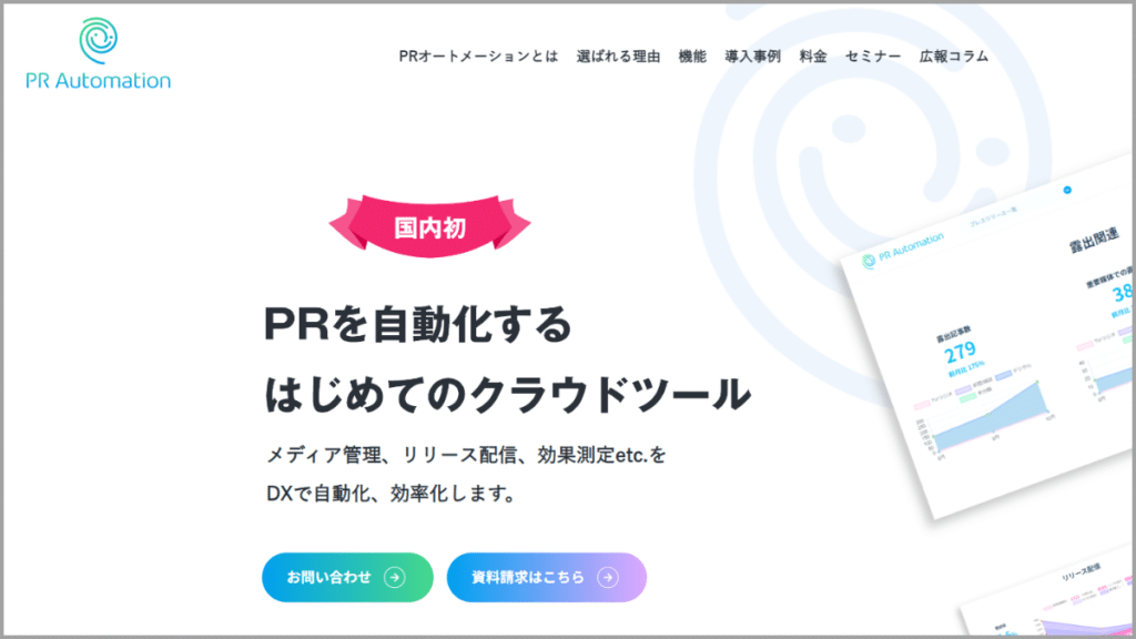 PR Automationは、PRの自動化や効率化を目指すプレスリリース配信サービスです。