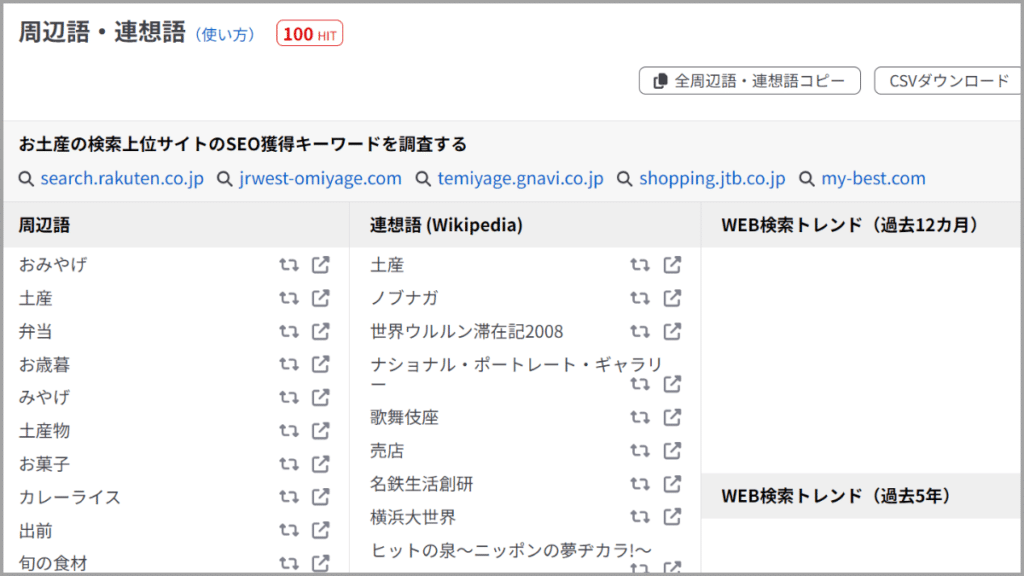 ラッコキーワードの機能:周辺語・連想語