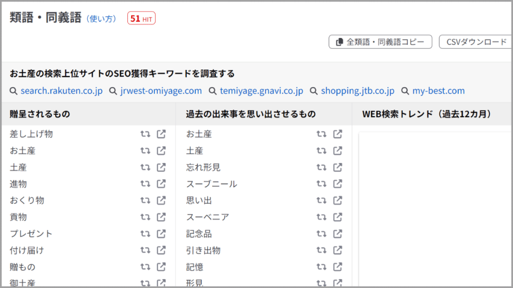 ラッコキーワードの機能:類語・同義語